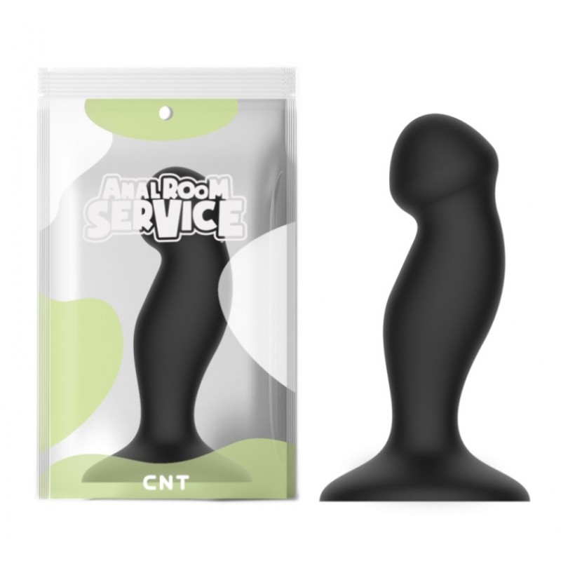 Анальная пробка с загнутой головкой черного цвета Cnt Moai
