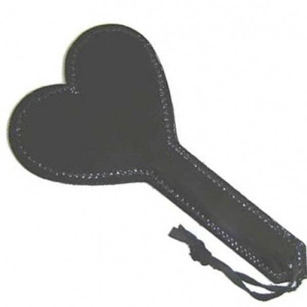 Черная шлепалка в форме сердца для соблазнения любимого человека. Изготовлена из натуральной кожи. Удобный ремешок. Размеры: длина 29 см., ширина 12 см., толщина 0,5 см.
