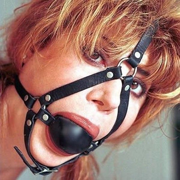 Черный кожаный намордник с черным(серым) шаром-кляпом для рта. Прочные регулируемые ремни из высококачественного материала. Украшен металическим кольцом.