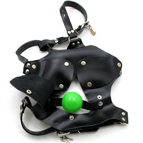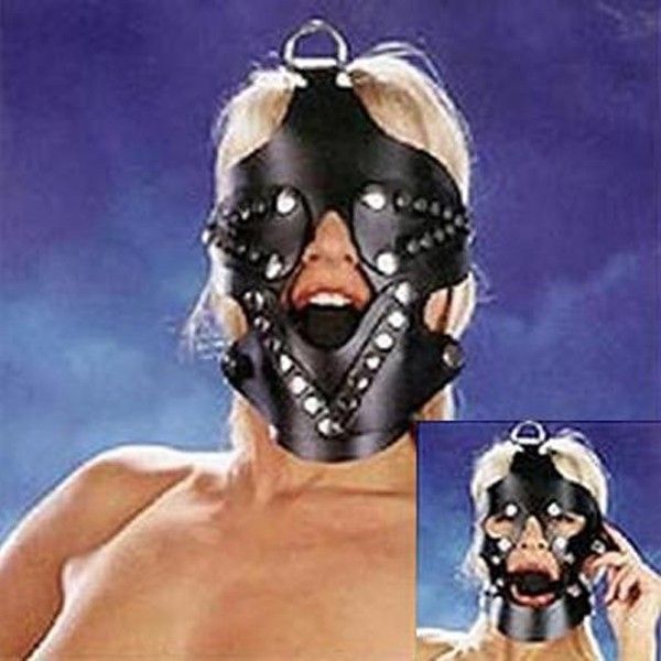 Сексуальный черный намордник из высококачественного материала. Съемные вырезы на глаза. Вырез для рта и носа. Украшен металлическими паетками. Диаметр кляпа 3,5см.