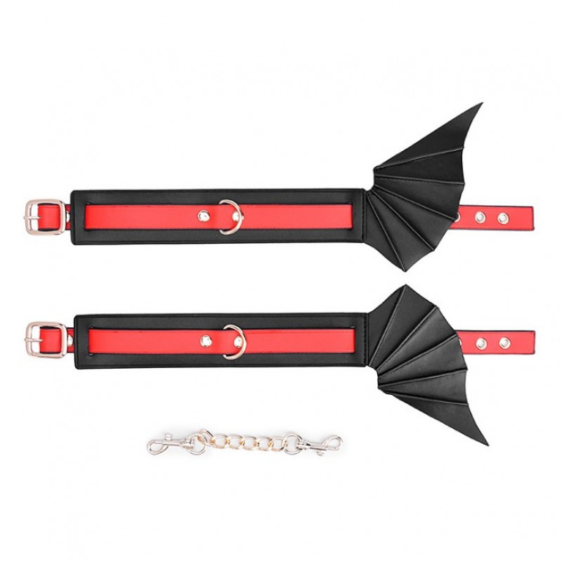 Характеристики Оковы для ног БДСМ с крыльями демона красно черного цвета Bdsm4u