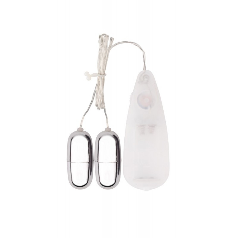 Характеристики Две вибропули для стимуляции клитора серебристого цвета с белым проводным пультом ДУ Chisa Dual Delight