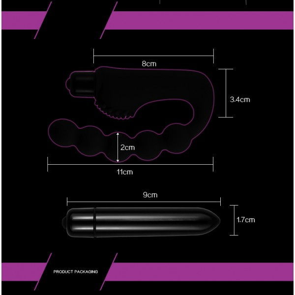 Анальный стимулятор в виде шариков с двойной стимуляцией. 10-т скоростной, силиконовый, водонепроницаемый. Общая длина 21 см, рабочая длина 11 см, диаметр 2 см.