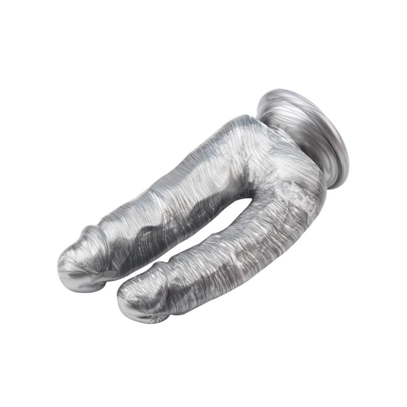 Двойной фаллоимитатор реалистичный на присоске серебристого цвета Chisa Dick Cumming