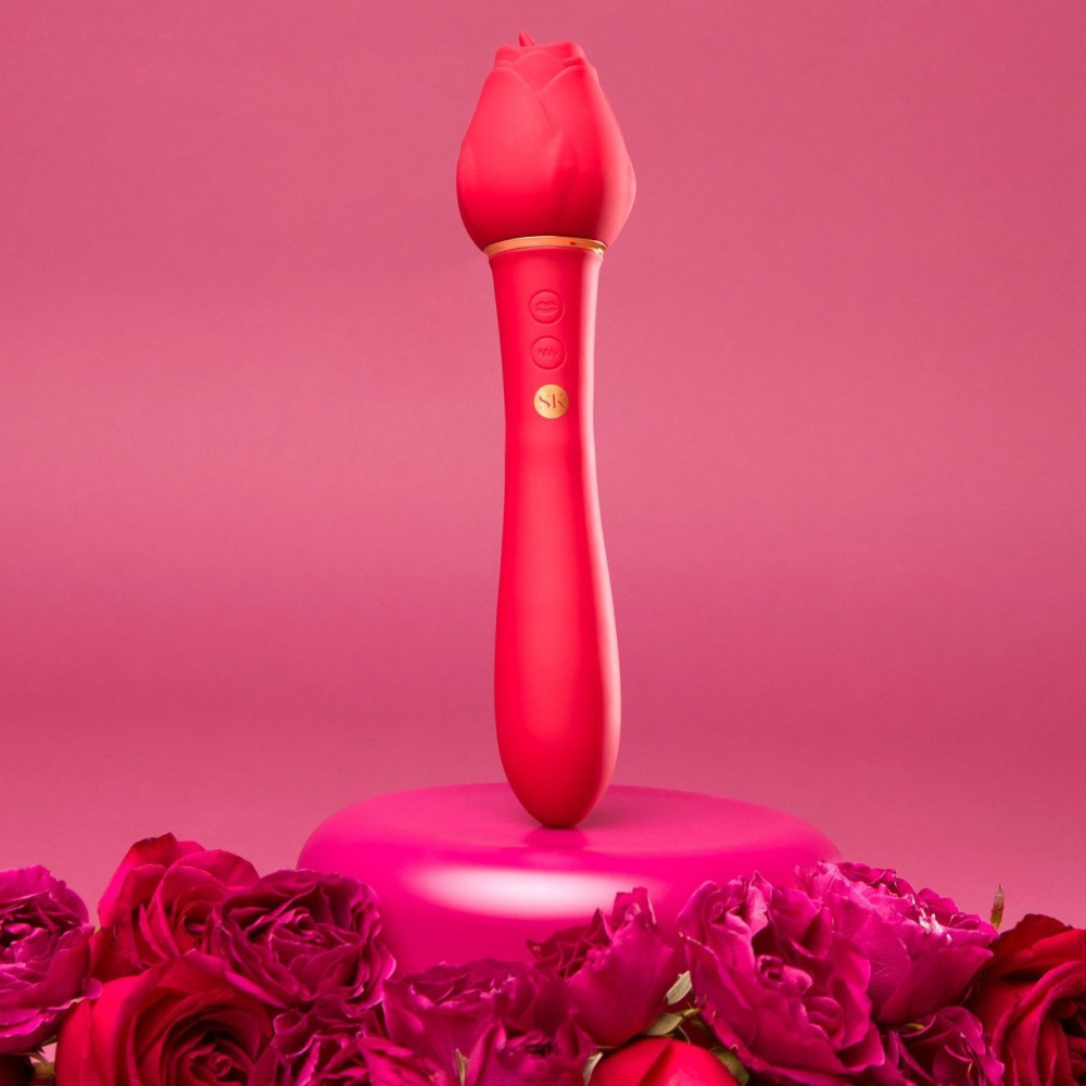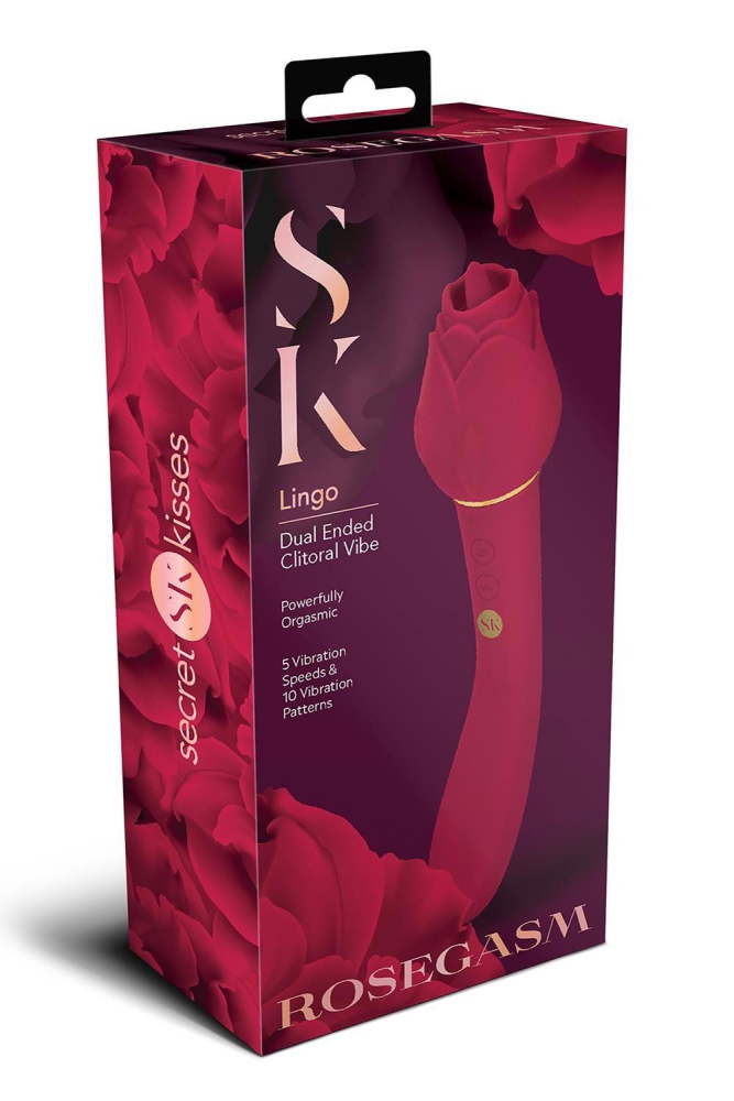 Двойной клиторальный вибратор в виде розы Secret Kisses Rosegasm, красный