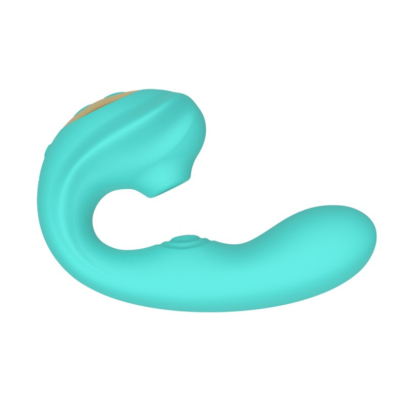 Двойной вибратор пульсатор вагинальный для точки G и с вакуумной стимуляцией клитора бирюзового цвета Winyi WY0661 Amada