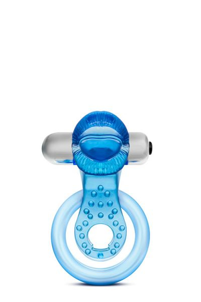 Эрекционное виброкольцо для продления секса голубого цвета STAY HARD TONGUE COCK RING