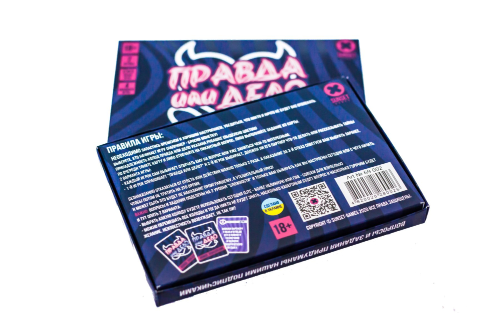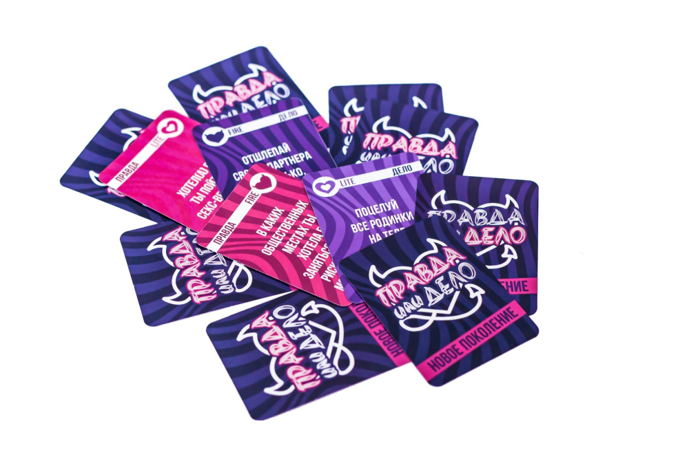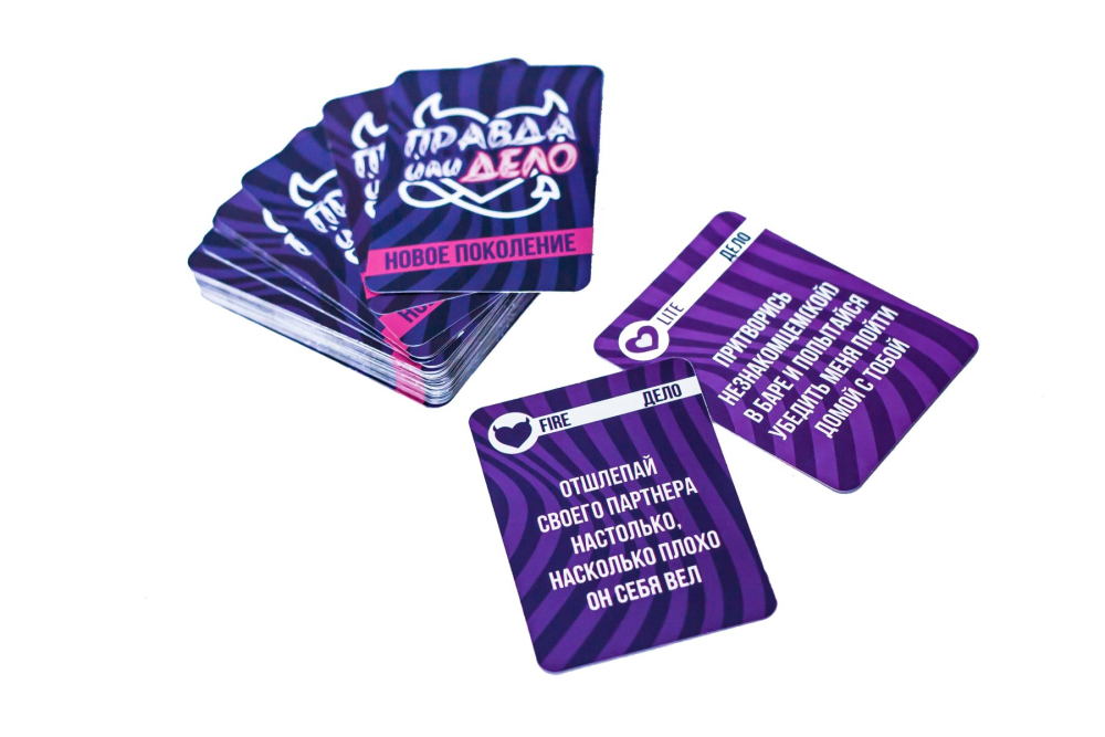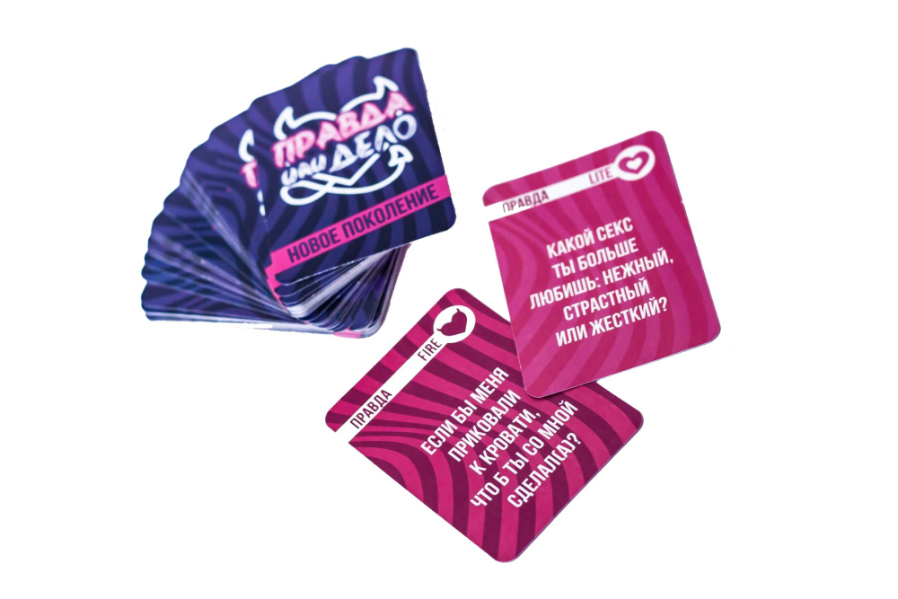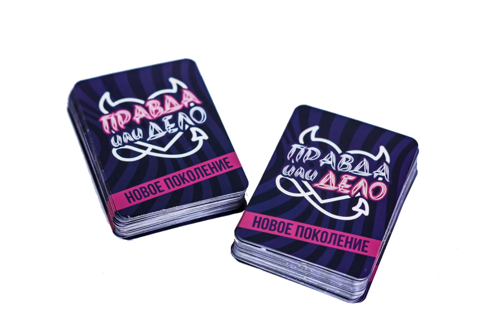 «Правда или дело: Новое поколение» - игра, которая как одновременно поможет вам узнать своего партнера как можно лучше, так и позволит вам провести незабываемый веселый вечер с вашими друзьями! 108 карточек двух уровней сложности, где уникальные 54 задания и 54 действия помогут вам раскрепоститься, весело провести время и понять, насколько рисковые у вас друзья Играйте в эту игру как дома, устраивая крутое домашнее свидание, полное приятных неожиданностей, так и собираясь вместе с компанией. Мешайте колоды кард и вытягивайте наугад все уровни сложностей, чтобы проверить, насколько вы готовы быть откровенны – или же выберите себе предпочитаемый уровень – «лайт» или «экстрим». Игра «Правда или дело: Новое поколение» имеет бесконечное время игры, потому что каждый раз вы можете выбирать разные колоды, получать разные ответы и точно узнаете о своем партнере или друзьях новые неожиданные вещи!