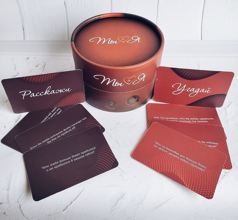 Описание: «Ты + Я» игра, которая не только сможет развлечь вас, но и станет настоящим семейным психологом для ваших отношений. Отвечая на небанальные, иногда неожиданные вопросы, вы будете узнавать что-то новое о своем партнере и о самом себе. Игра помогает раскрепостить отношения, найти новые темы для обсуждения, подтолкнуть к интересному разговору.