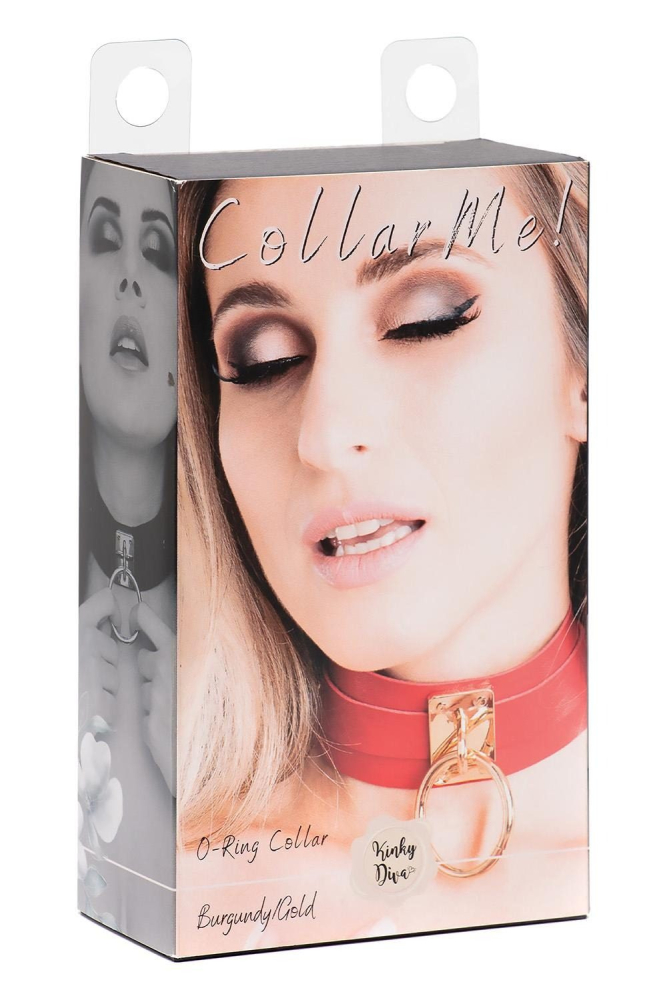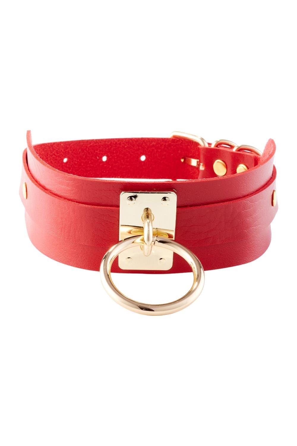 Эротический красный ошейник для игр БДСМ Kinky Diva с золотистым кольцом