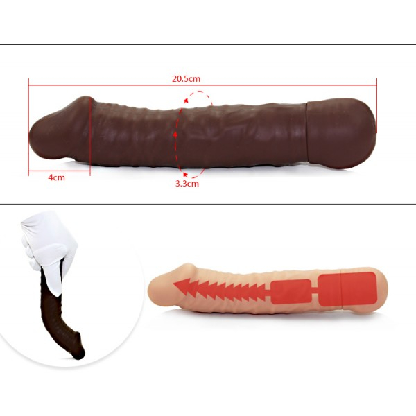 Силиконовый фаллоимитатор телесного цвета. Полностью водонепроницаемый. Общая длина 21 см., используемая длина 16,5 см., диаметр 3,6 см.