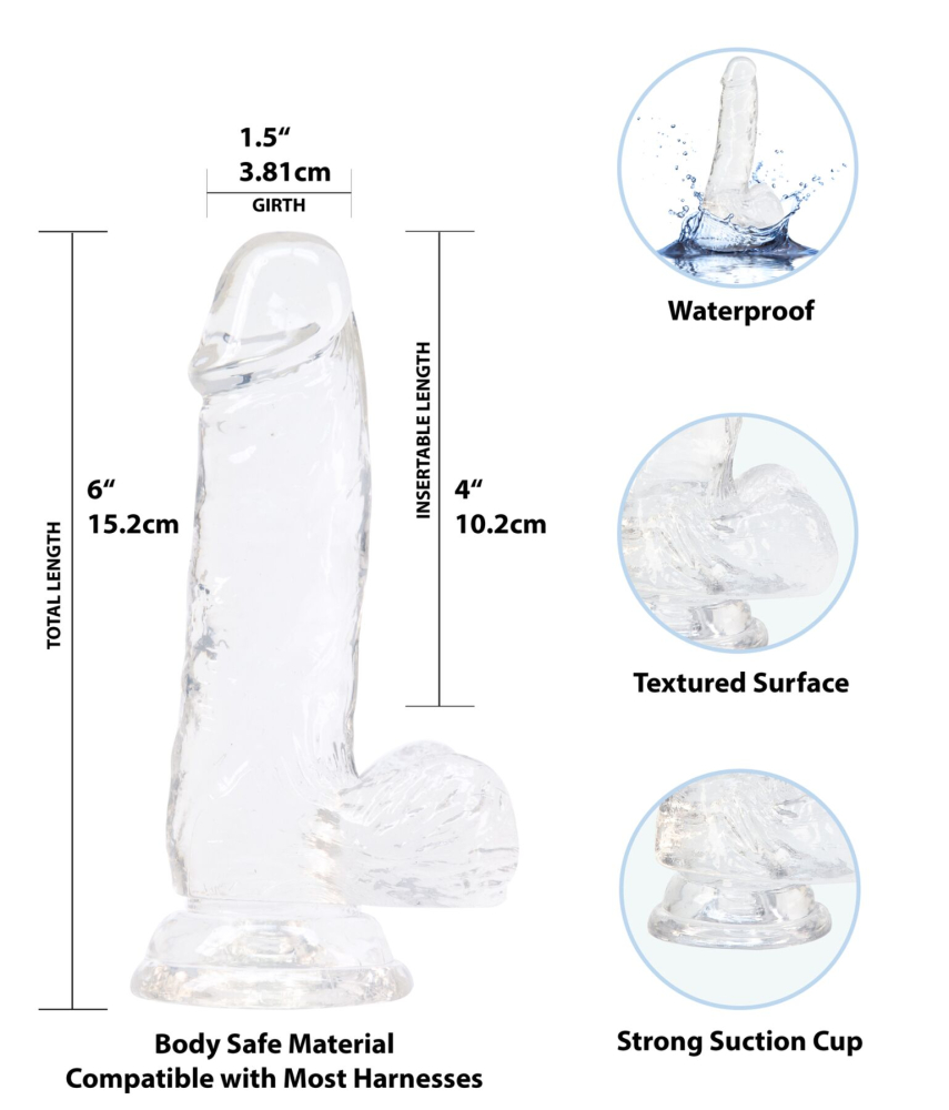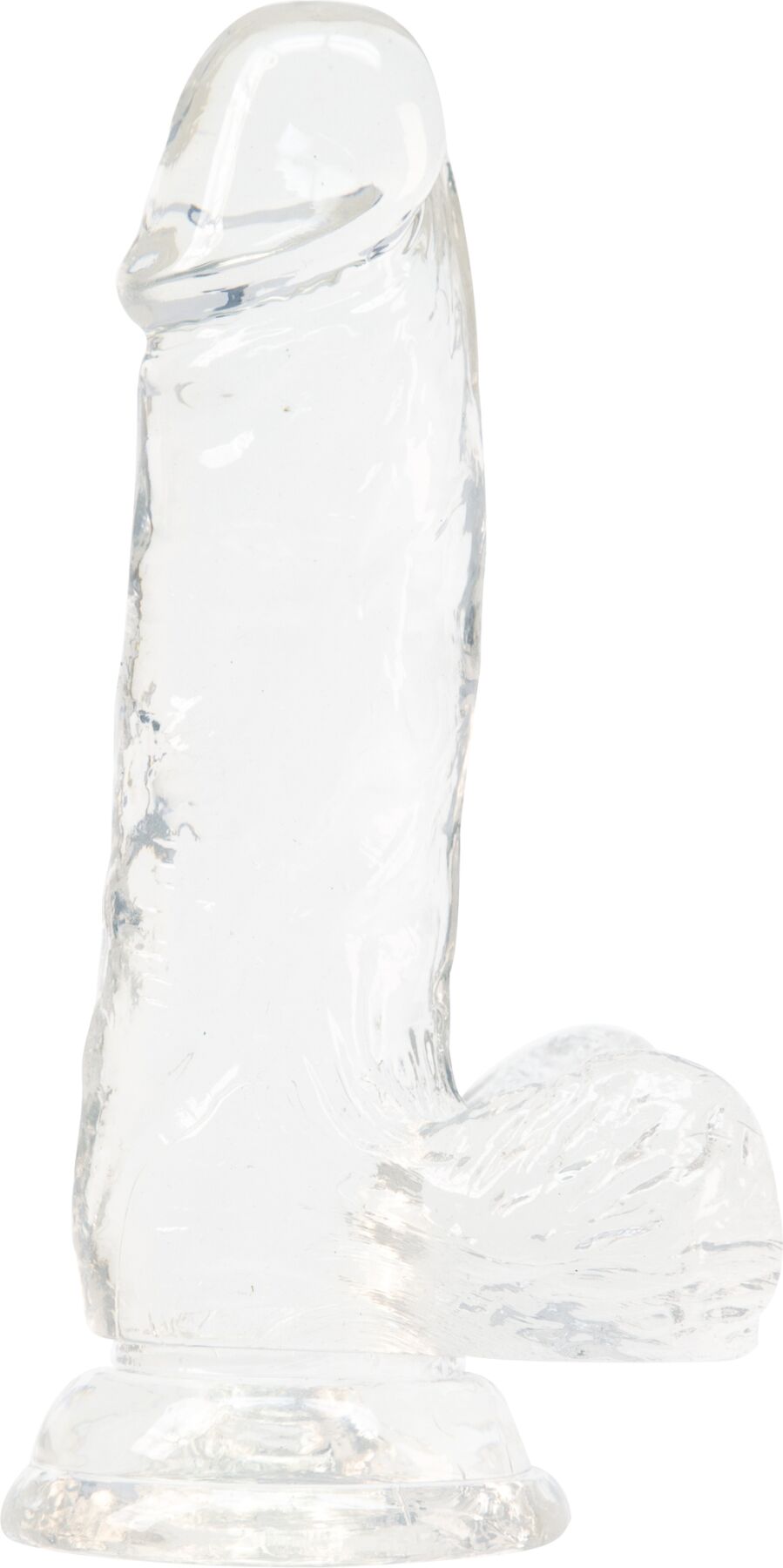 Характеристики Реалистичный фаллоимитатор с мошонкой и присоской прозрачный ADDICTION Crystal