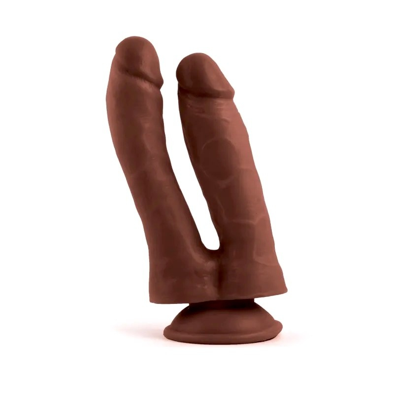 Фаллоимитатор двойной для вагинально-анальной стимуляции на присоске Double Penetrator Mr. Rude 7.3 коричневый