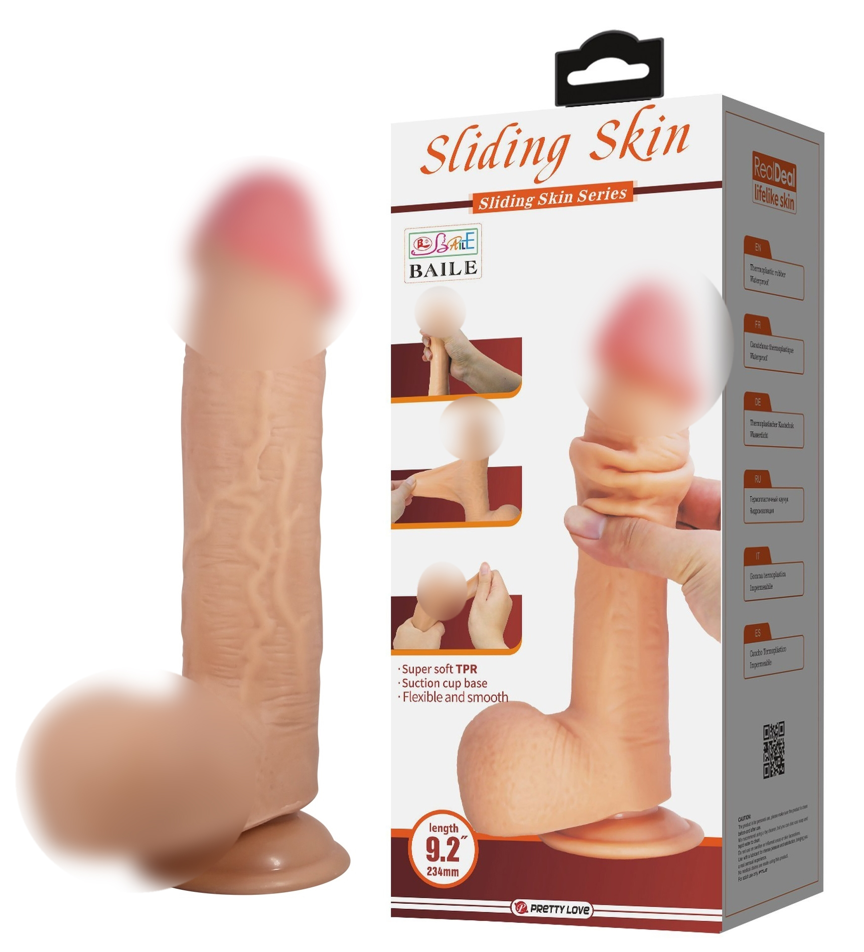 Характеристики Фаллоимитатор реалистичный на присоске с эффектом скользящей кожи телесный LyBaile Sliding Skin
