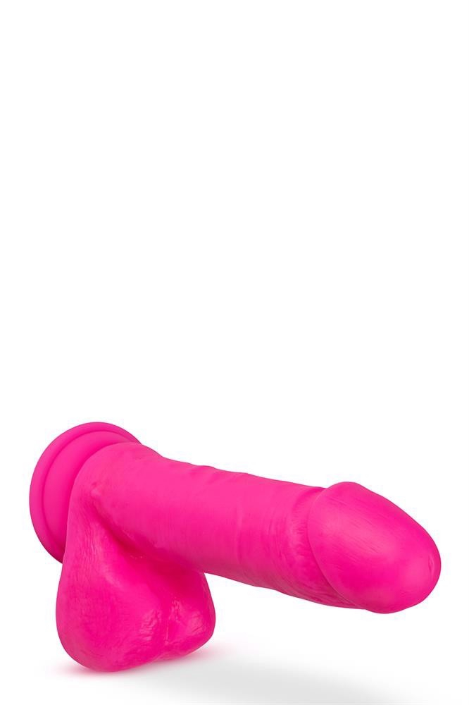 Neo Elite – силиконовый член двойной плотности с яичками – неоново-розовый