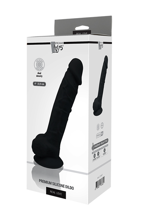 Фаллоимитатор 22,9/4,5 см с подогревом на присоске реалистичный чёрный REAL LOVE 9