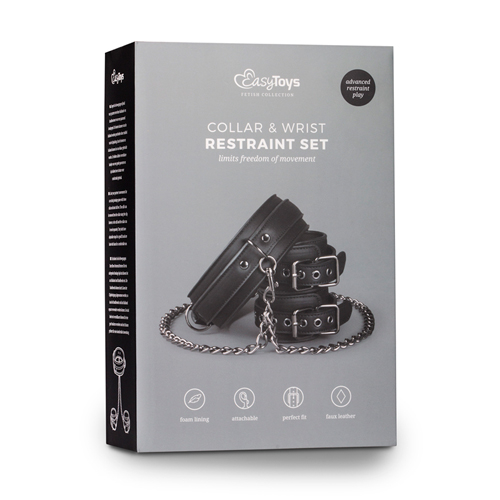 Вы контролируете ситуацию, когда ваша саба одета в этот фантастический комплект для бондажа! Он состоит из воротника с манжетами для рук, которые легко отсоединяются друг от друга с помощью застежек-клипсок. Игрушки изготовлены из прочной искусственной кожи с подкладкой из поролона, что делает их долговечными и удобными в носке. Воротник регулируется от 45 до 58 см, а манжеты - от 11 до 28 см. Цепочка имеет длину 40 см. Сочетайте этот специальный набор с другими игрушками, такими как манжеты на лодыжках, кляпы для мячей, весла и зажимы для сосков, чтобы получить дополнительные захватывающие ощущения.