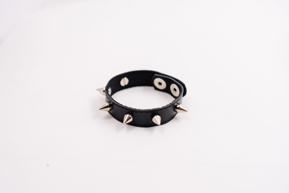 Характеристики Фиксатор для члена с шипами БДСМ из металла и натуральной кожи черного цвета Scappa