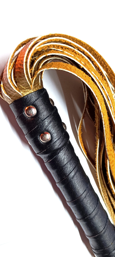 Флогер комбинированный с кожаной ручкой - многохвостовой является одним из наиболее используемых девайсов во флагеляции. Это отличный вариант для опытных пользователей, предпочитающих интенсивную стимуляцию и не боящихся новых ощущений.