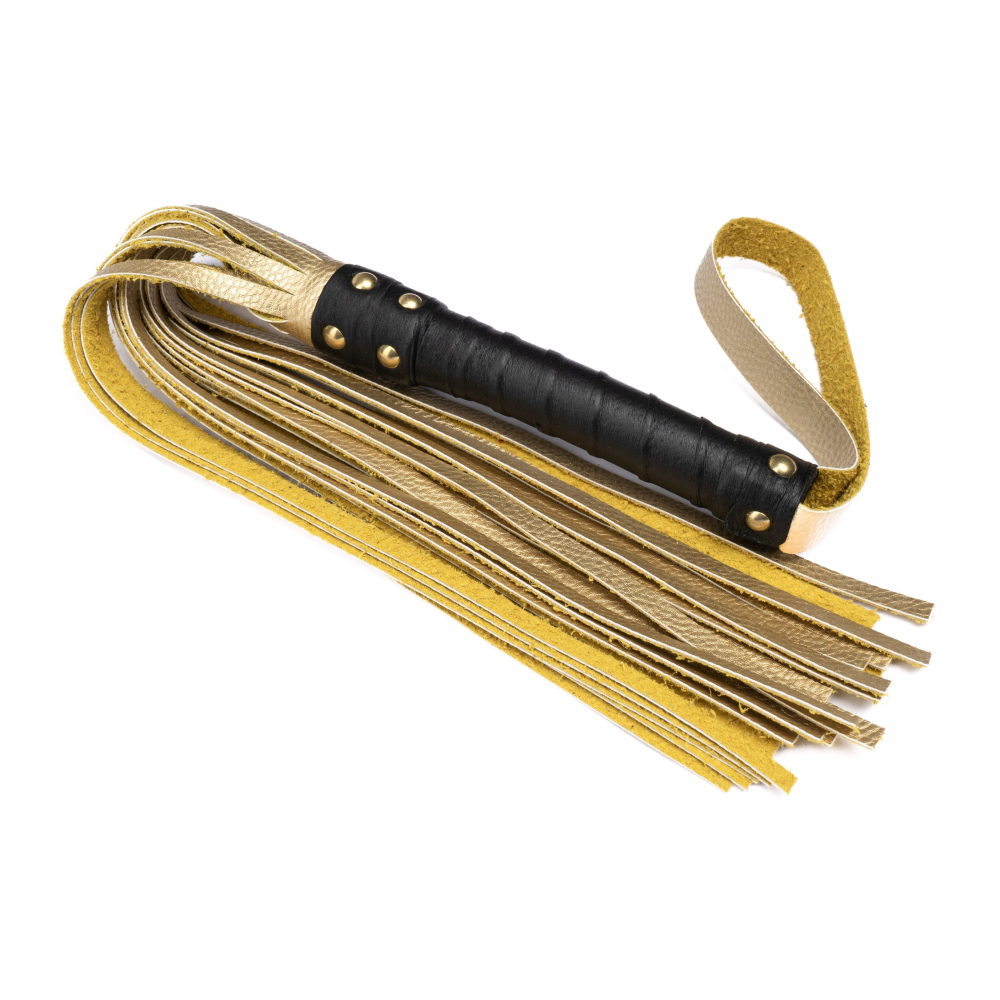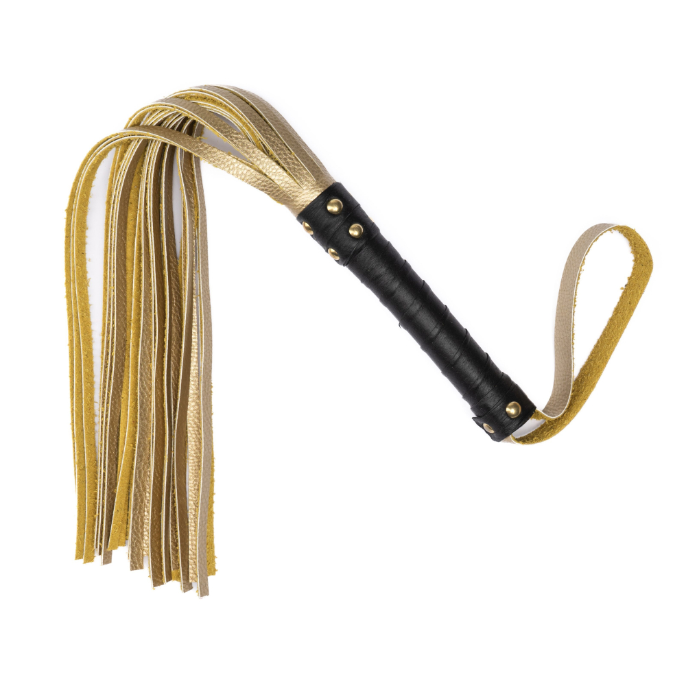 Флоггер БДСМ из комбинированной кожи черно золотистого цвета Flirty COMBO Leather
