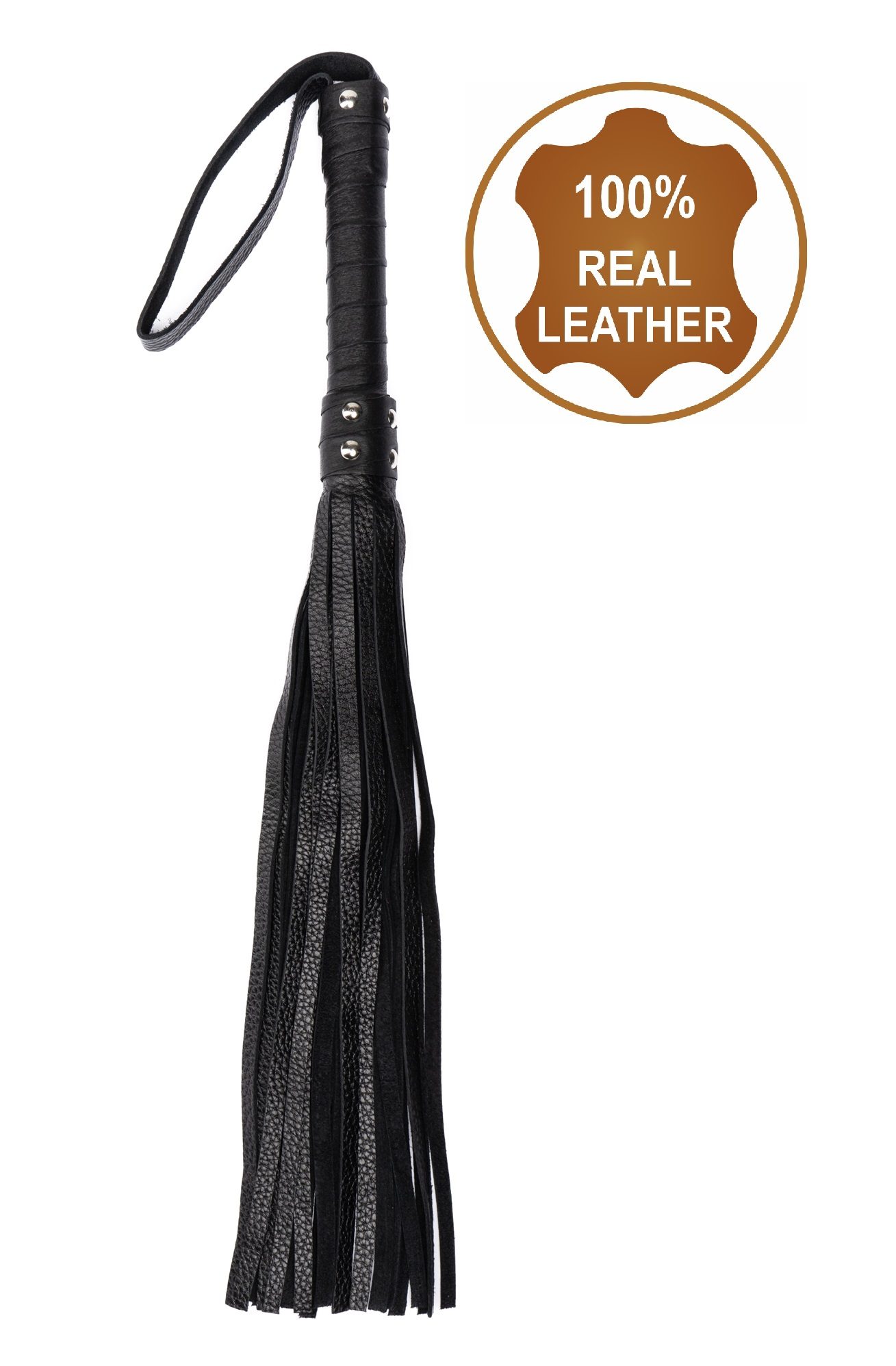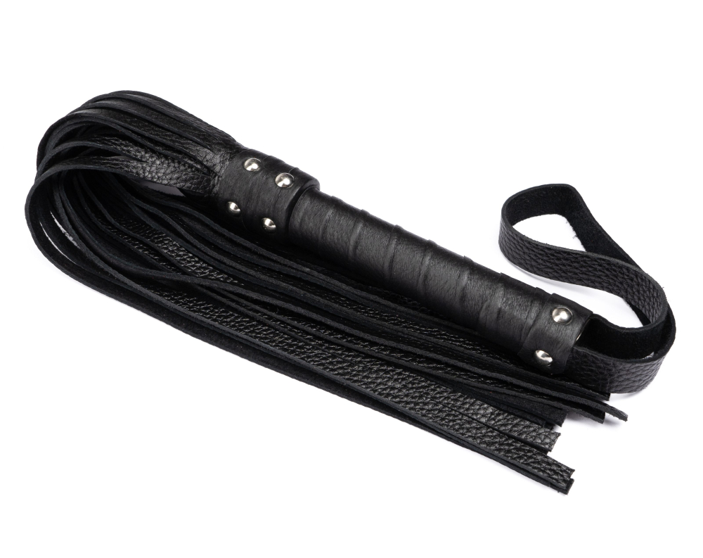 Великолепный флоггер из высококачественной натуральной кожи, с жесткой рукояткой.