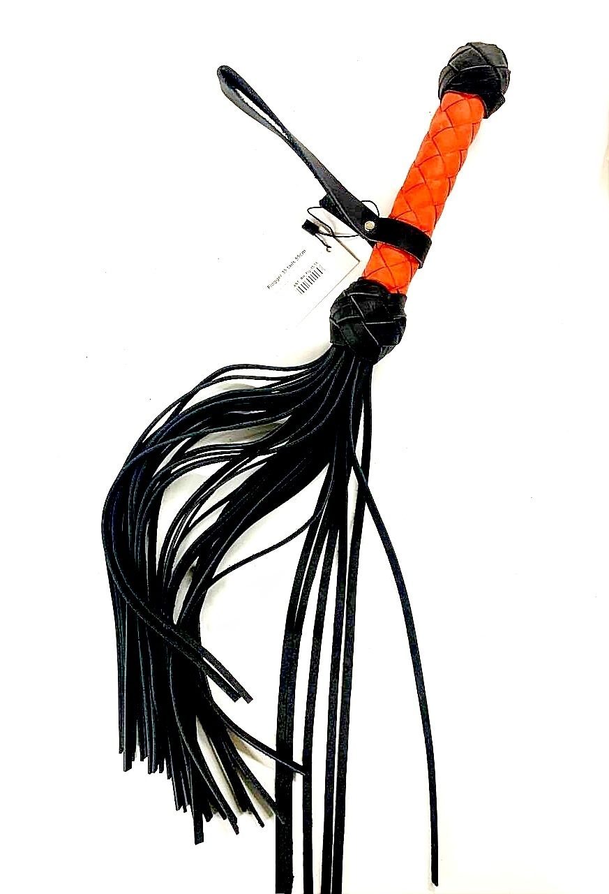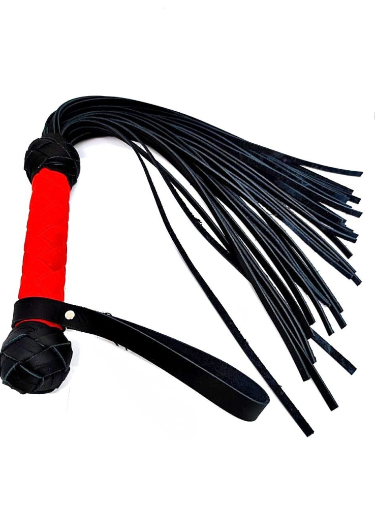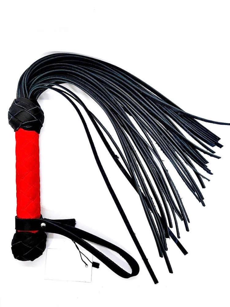 Аккуратный черно-красный флоггер, изготовленный из натуральной кожи.