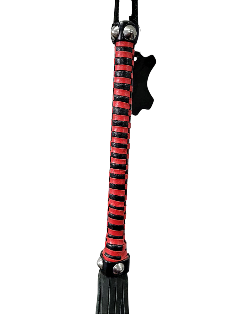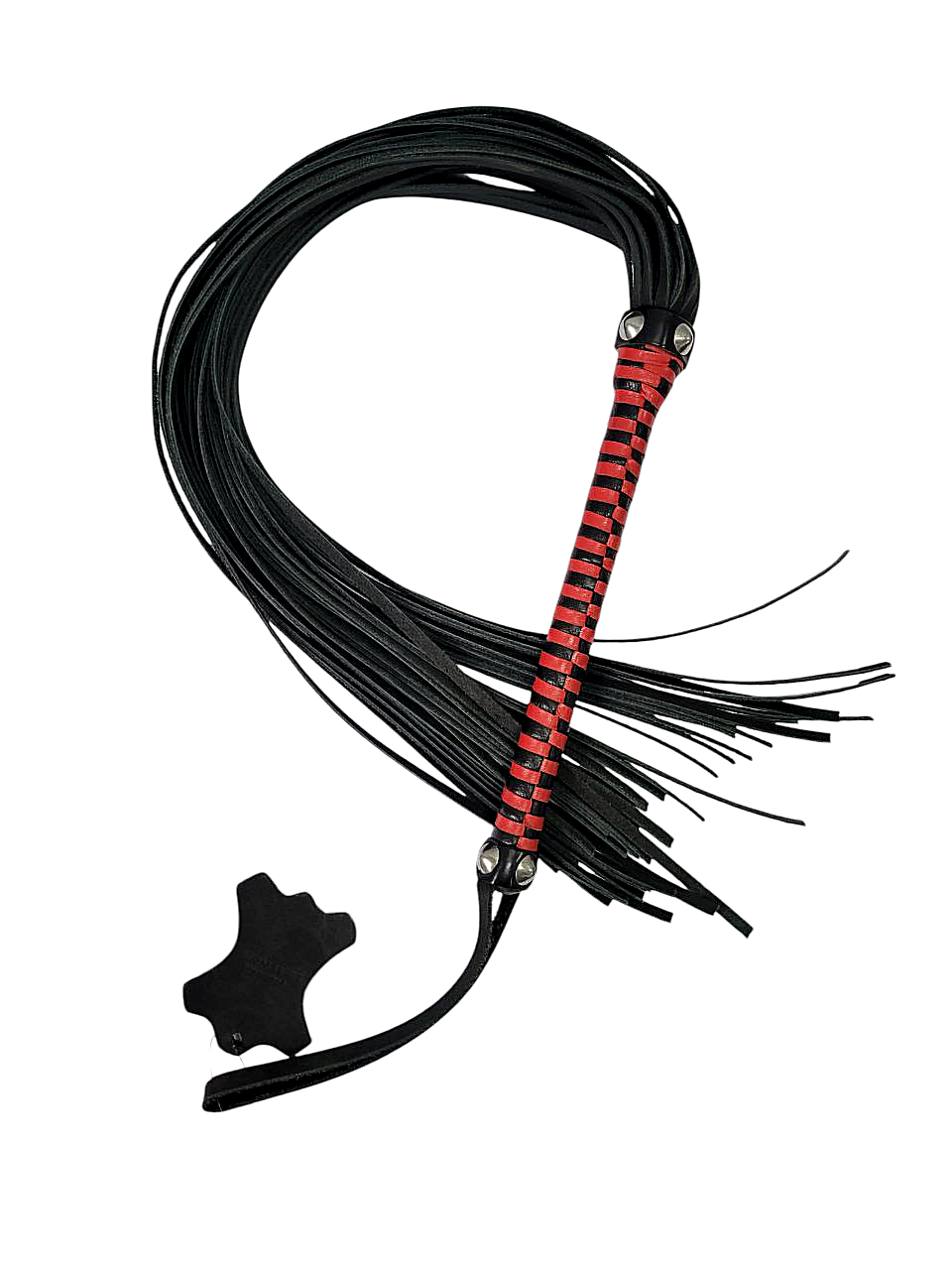 Флоггер DS Fetish с хлыстами из нубука и кожаной ручкой, черно-красный