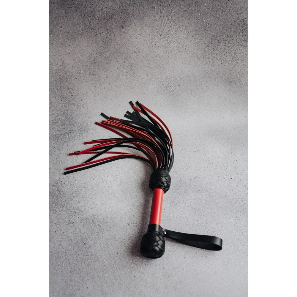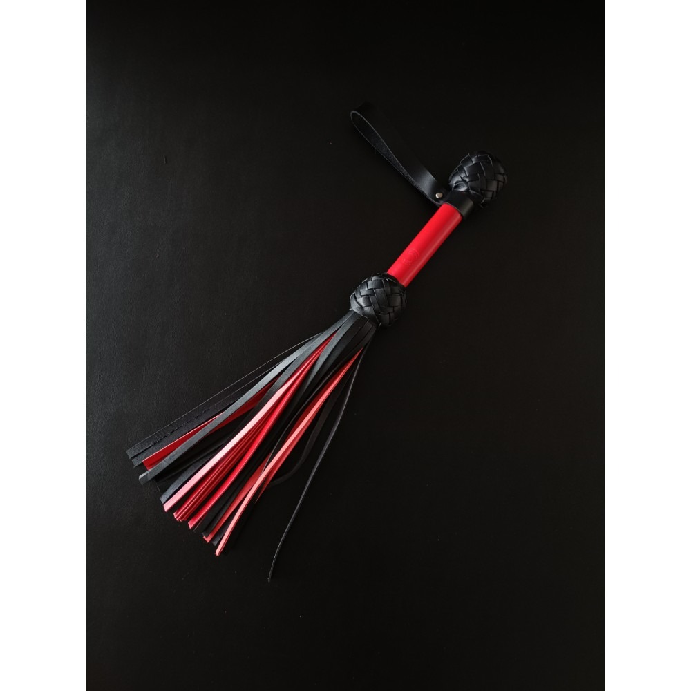 Флогер с петлей на рукояти Candy Hero, натуральная кожа, черно-красный, 30 хвостов, 45 см.