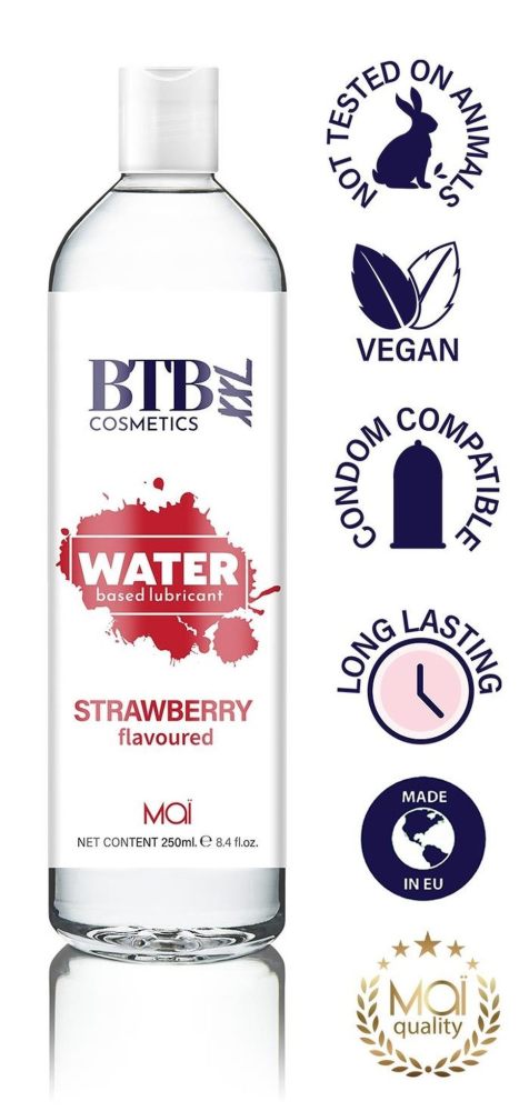 Высококачественная смазка на водной основе, с ароматом клубники, ведь страсть сладка!