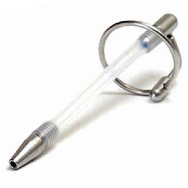 Изготовлен из нержавеющей медицинской стали. Общая длина 10,6 см., вставная длина 9,5 см., диаметр 0,8 см., длина от ручки до кольца 2,3 см., диаметр кольца 3 см.