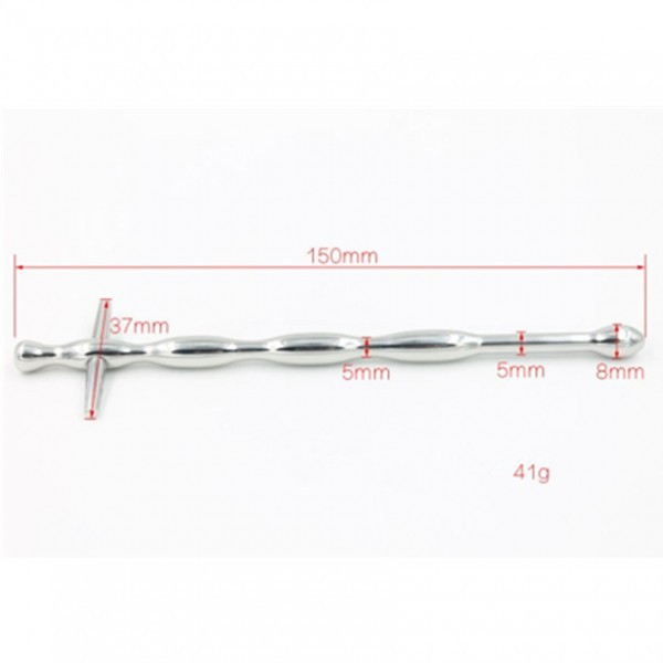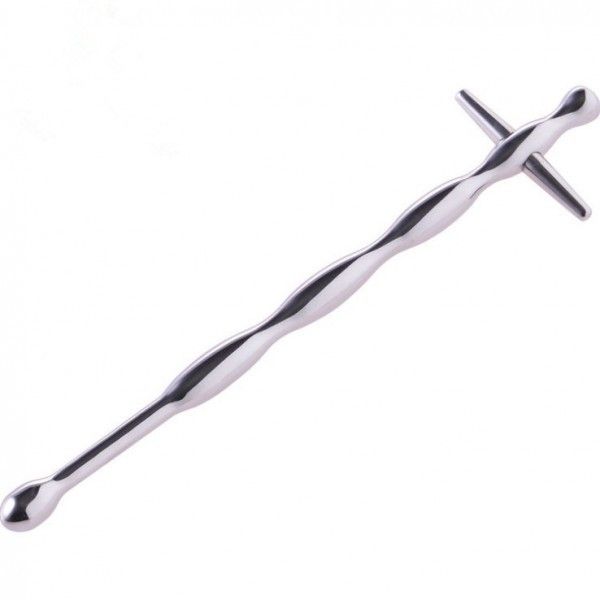 Катетер для уретры из нержавеющей стали с утолщениями по длине и поперечным наконечником.