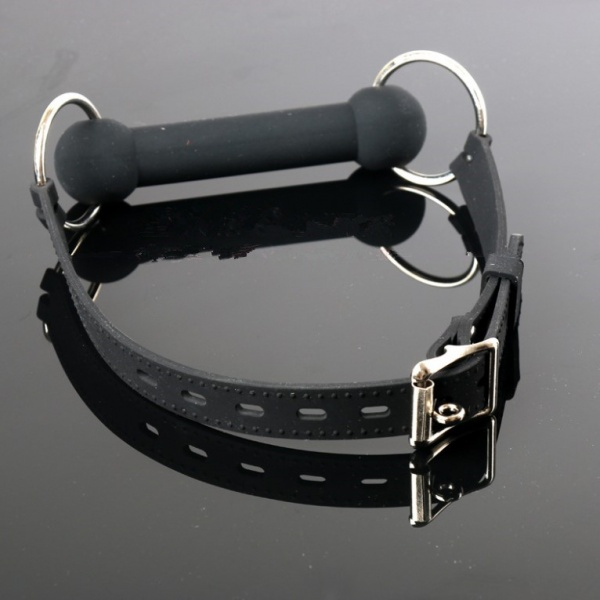Черный кожный кляп с силиконовой палочкой для рта станет прекрасным дополнением в бдсм-играх. Регулируемый ремень. Высокое качество.
