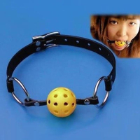Кожаный кляп для рта с черным регулируемым ремнем и желтым твердым шариком. Высококачественный материал. В ассортименте присутствуют разные цвета.