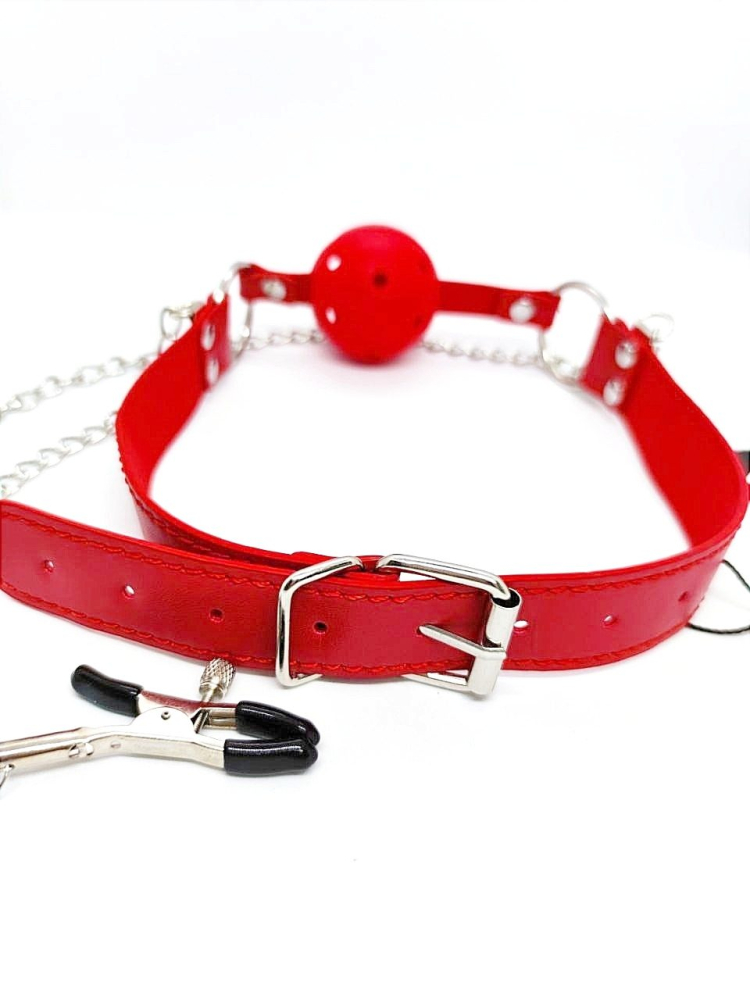 Отличный вариант многофункционального аксессуара! Предлагаем купить кляп с силиконовым шариком и зажимами для сосков , который прекрасно дополнит ваш бдсм-арсенал.