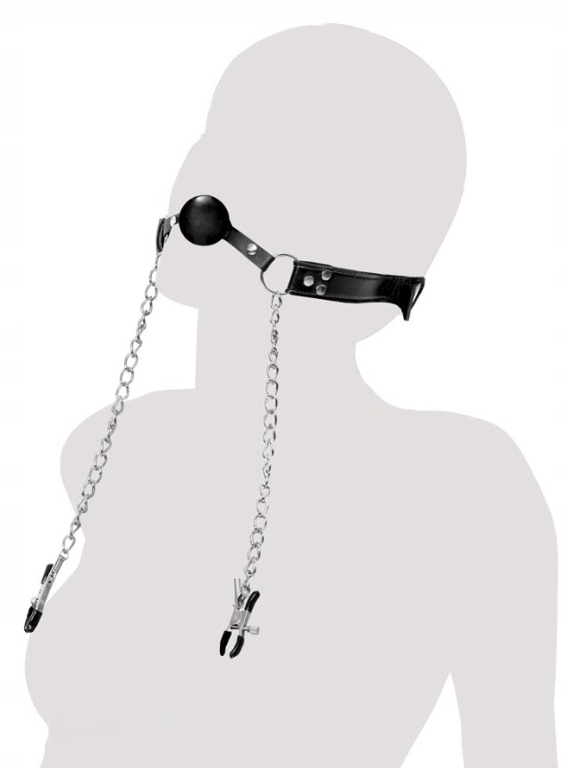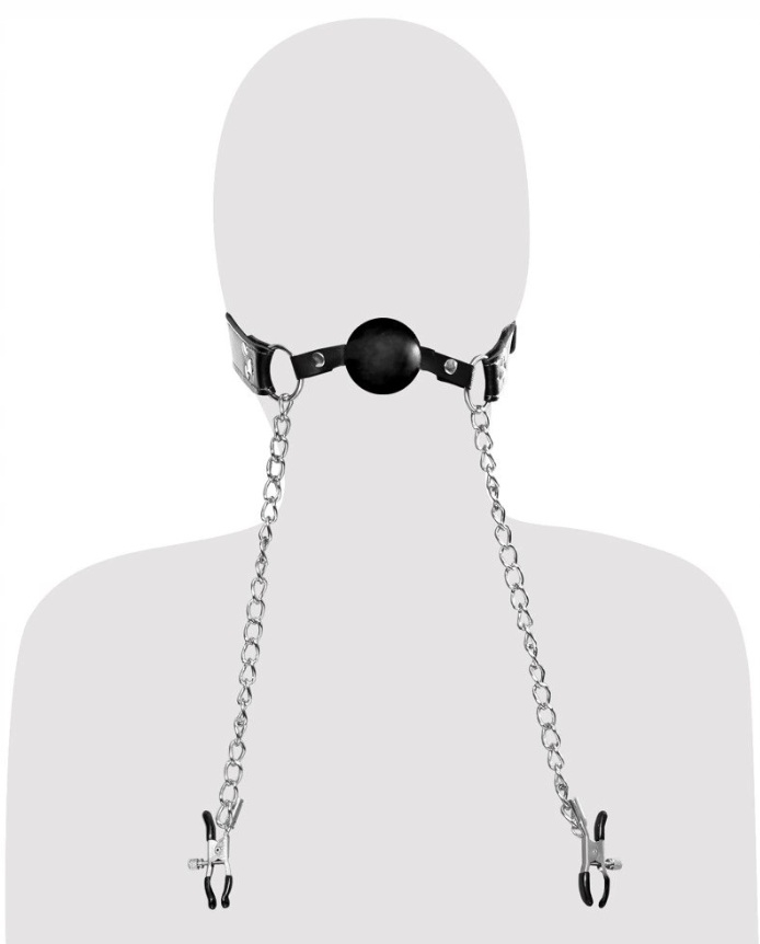 Кляп с шариком + зажими на соски Pipedream Fetish Fantasy Series черный