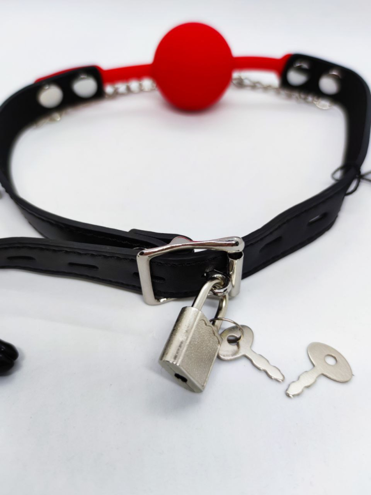 Силиконовый шарик довольно комфортно ощущается во рту, кляп регулируется по объему, а присоединенные зажимы на цепочках позволяют регулировать силу воздействия. Шарик из 100% силикона, безопасный и гипоаллергенный.