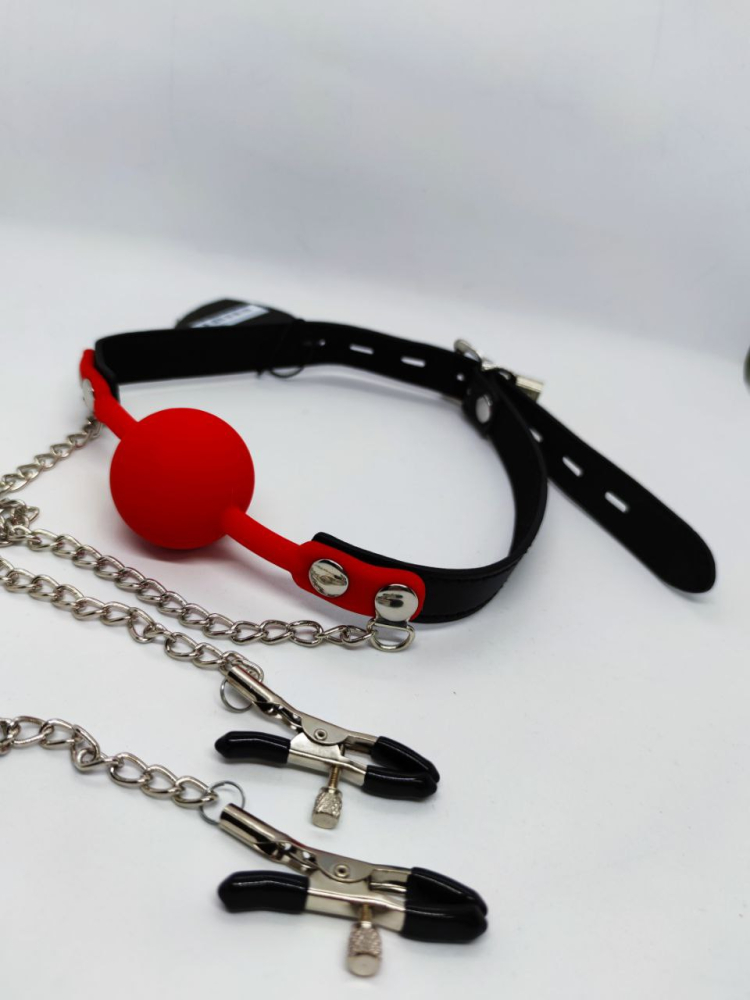 Отличный вариант многофункционального аксессуара! Предлагаем купить кляп с силиконовым шариком и зажимами для сосков , который прекрасно дополнит ваш бдсм-арсенал.