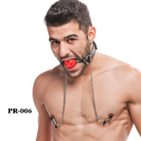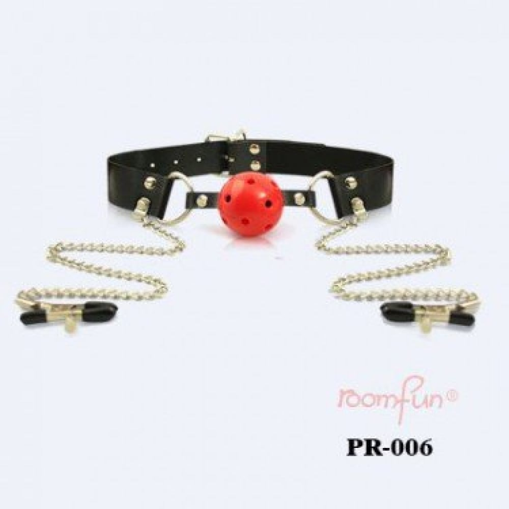 Кляп с красным шариком Roоmfun и зажимами для сосков