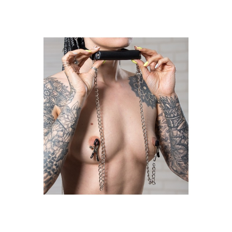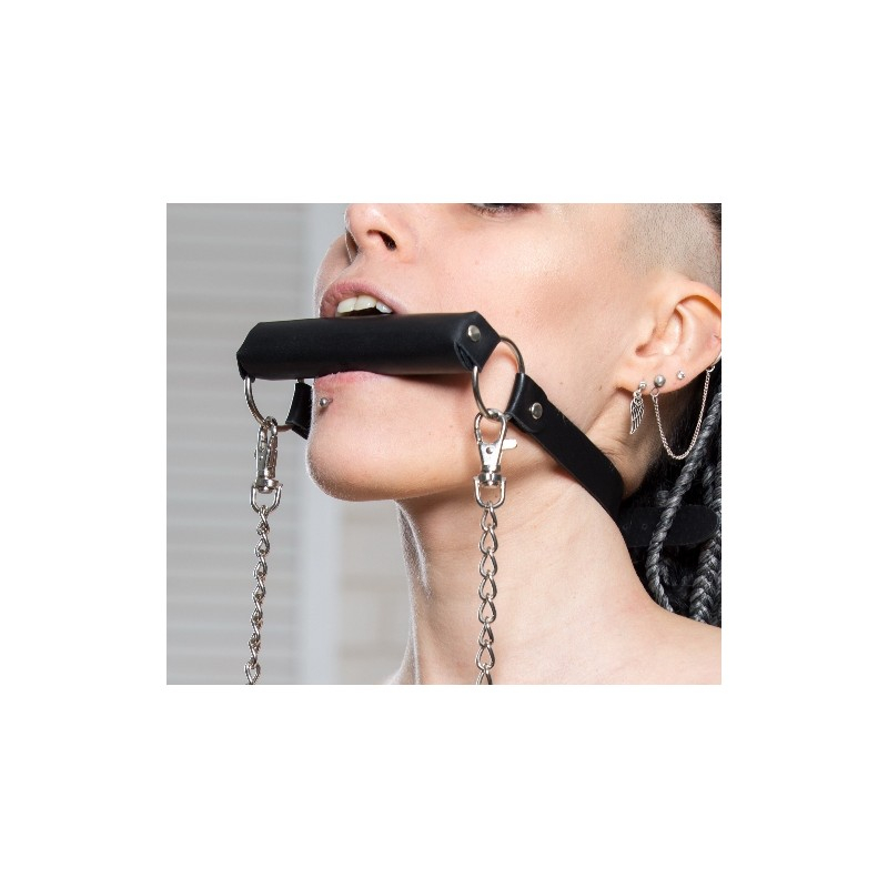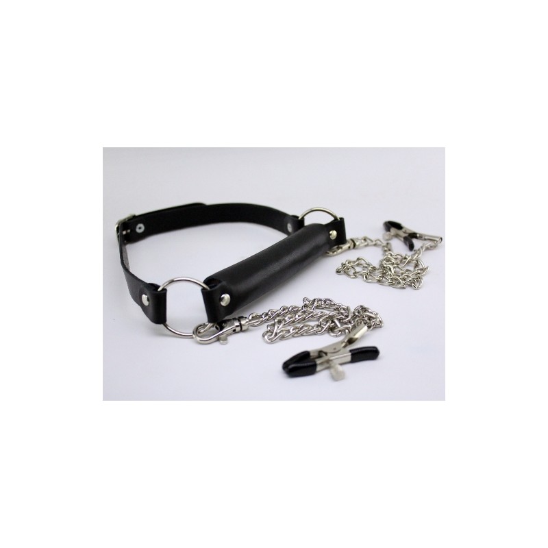 Кляп с зажимами для сосковЦвет: черныйМатериал: натуральная кожа и металлическая фурнитураРазмер: регулируется