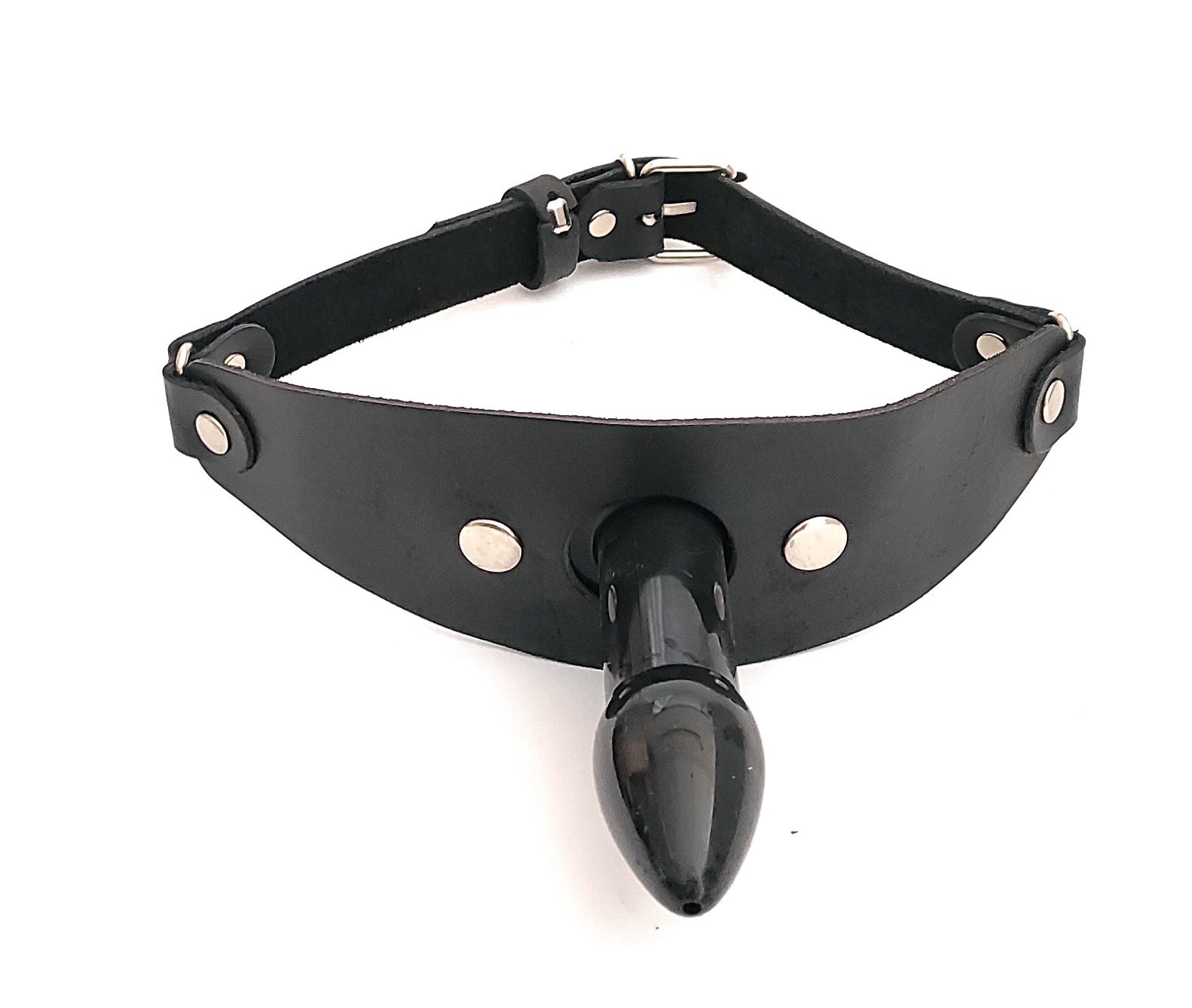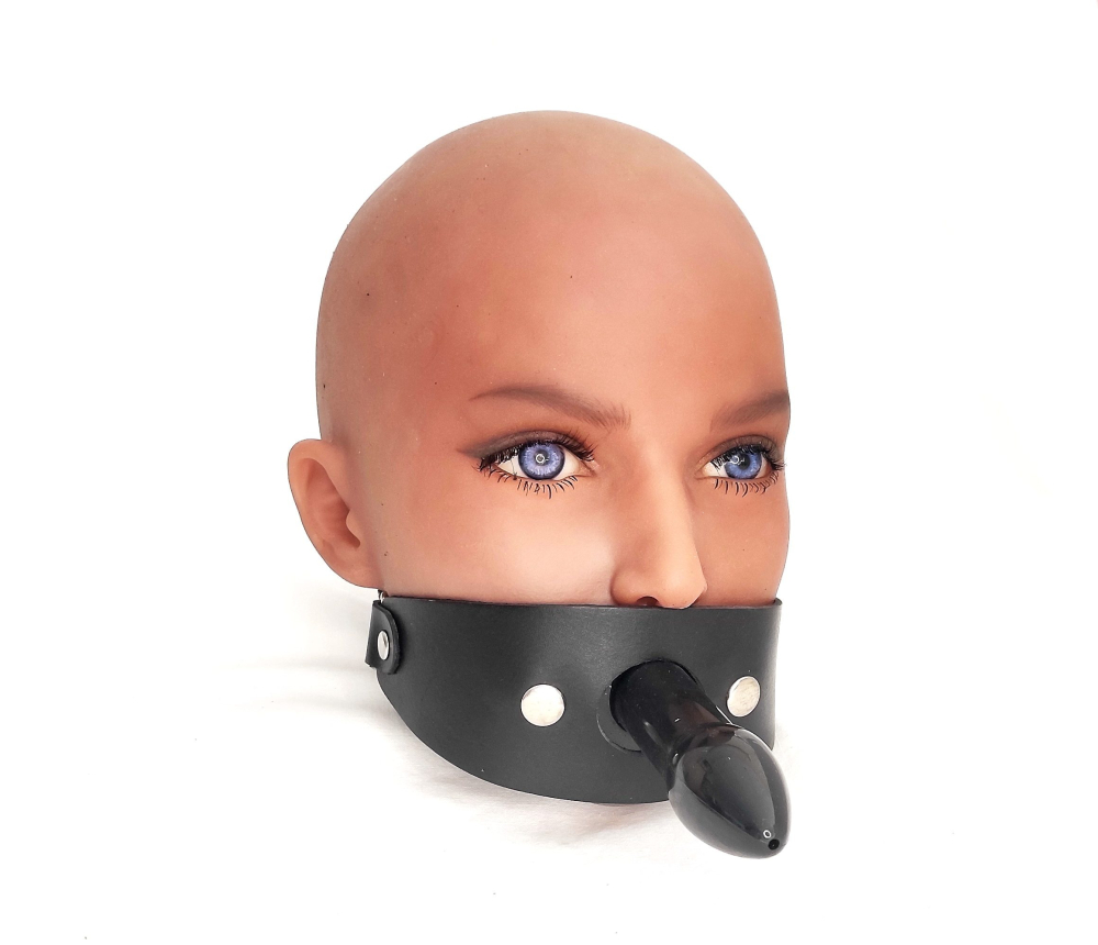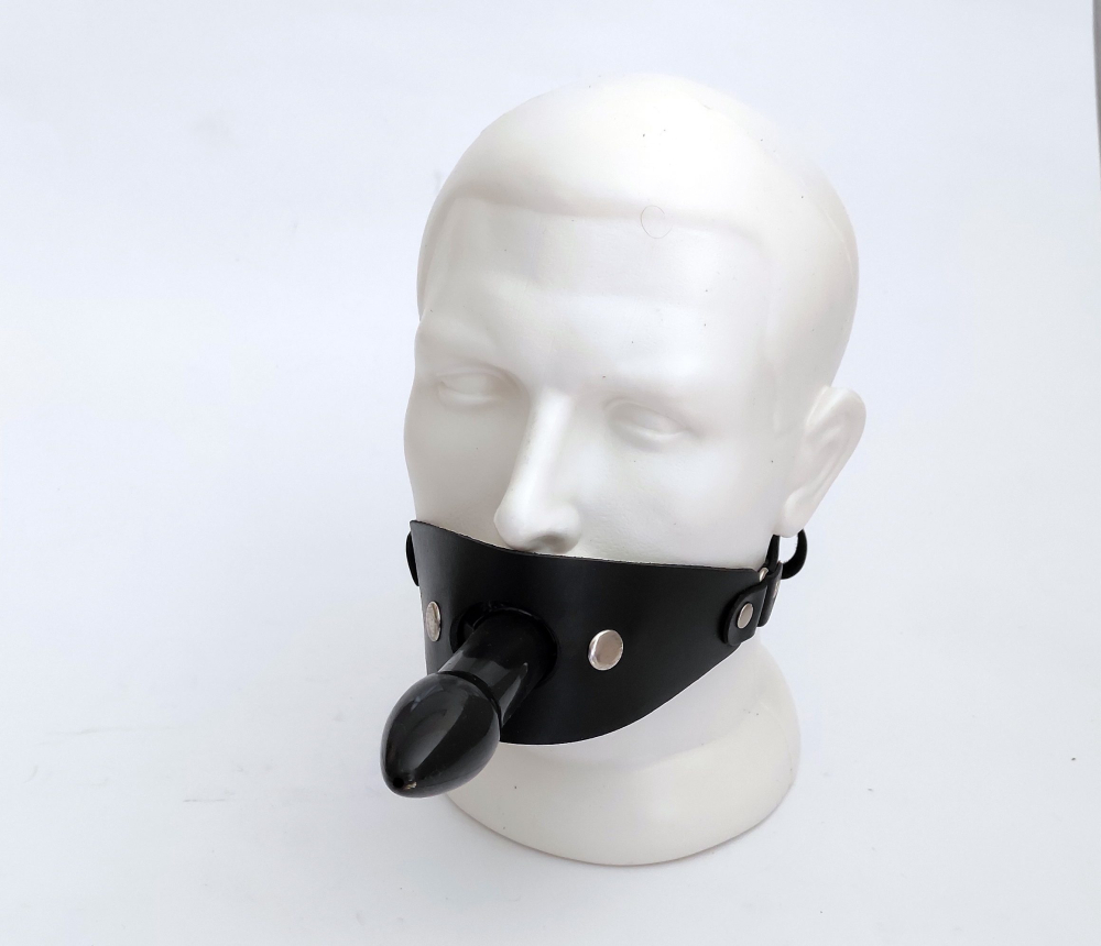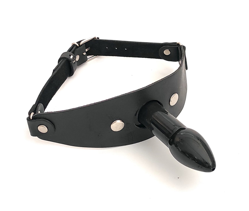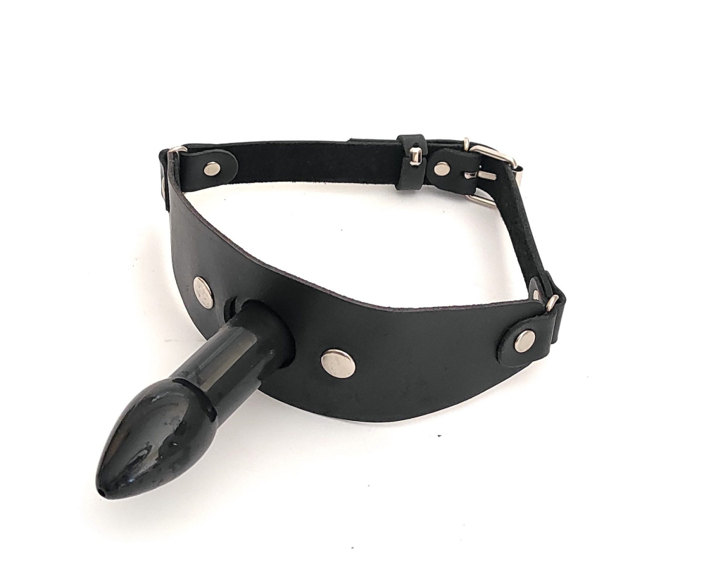 Кляп в рот с анальной пробкой БДСМ из натуральной кожи черного цвета Scappa