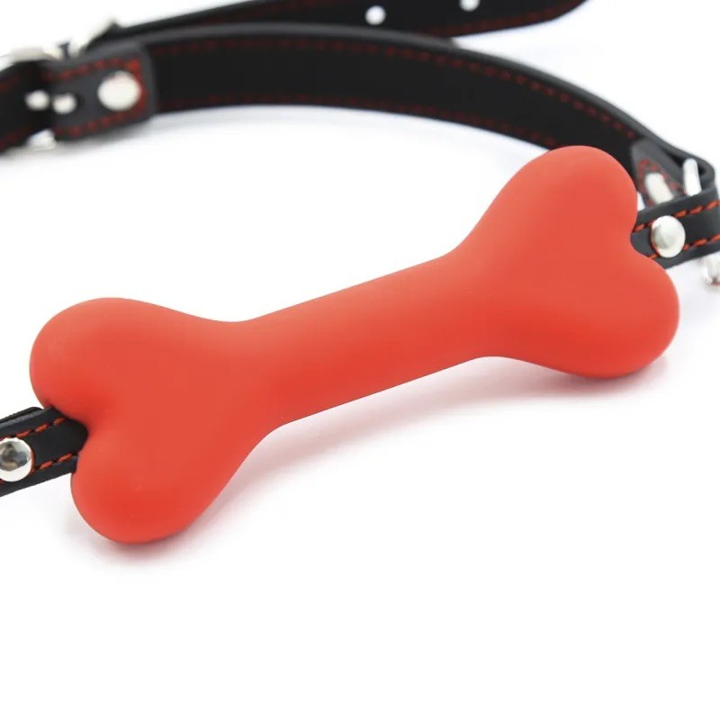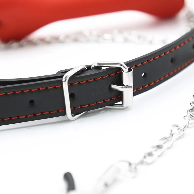 Кляп в рот с красной косточкой и зажимами на соски для БДСМ черного цвета