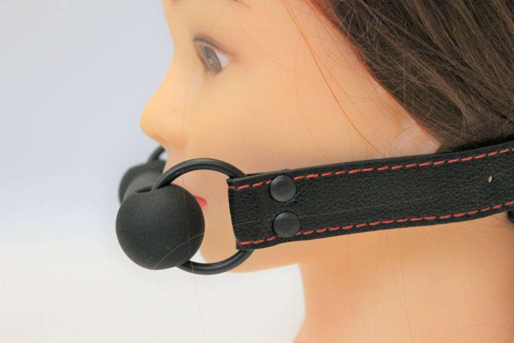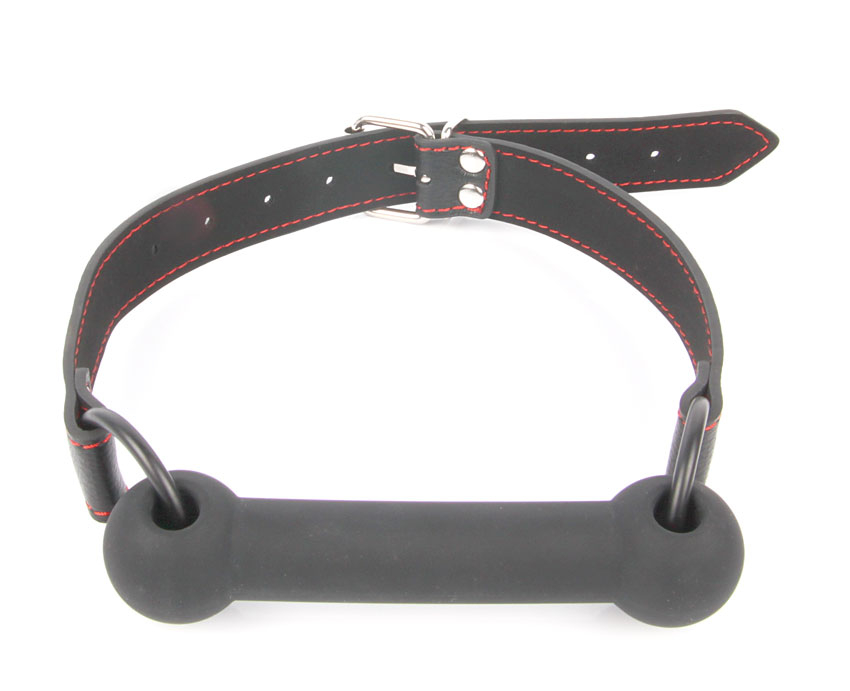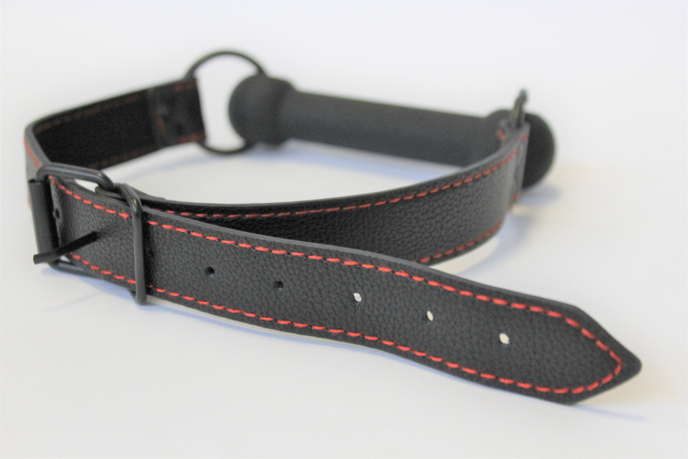 Характеристики Кляп в ротик под прикус силиконовый с ремешком из экокожи Notabu черный L 60 см D 2 см