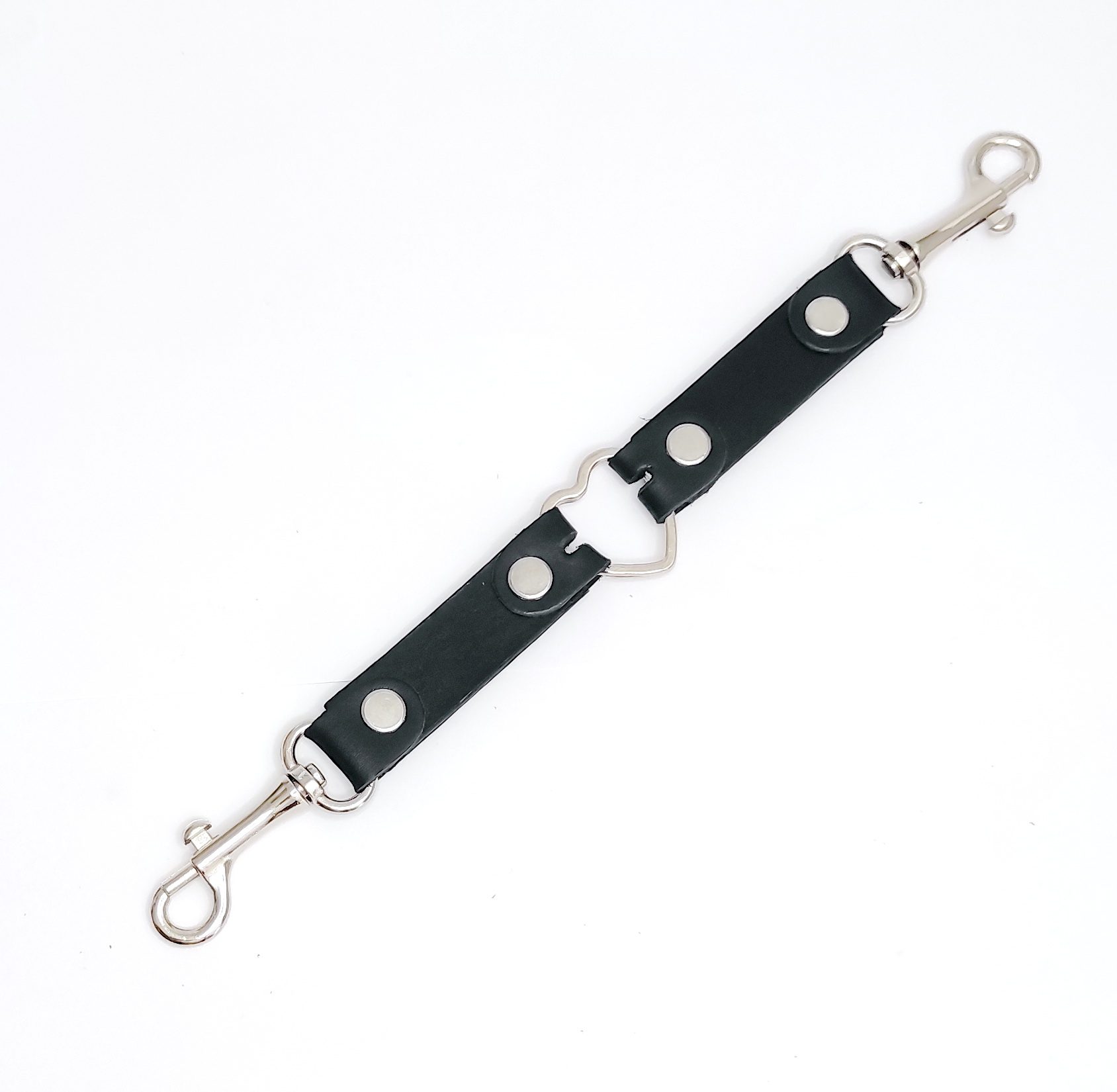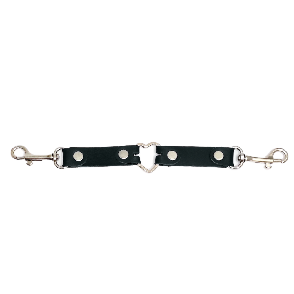 Коннектор с двумя карабинами и сердцемМатериал: натуральная кожа и металлическая фурнитураОбщая длина 27 см