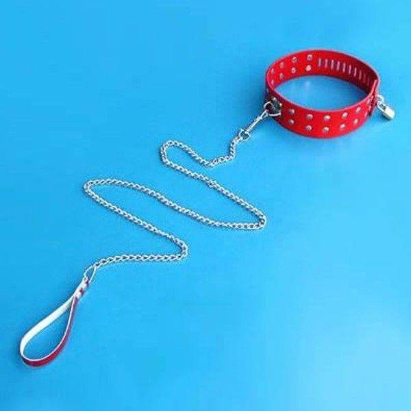 Характеристики Красный кожаный ошейник с металлической цепью