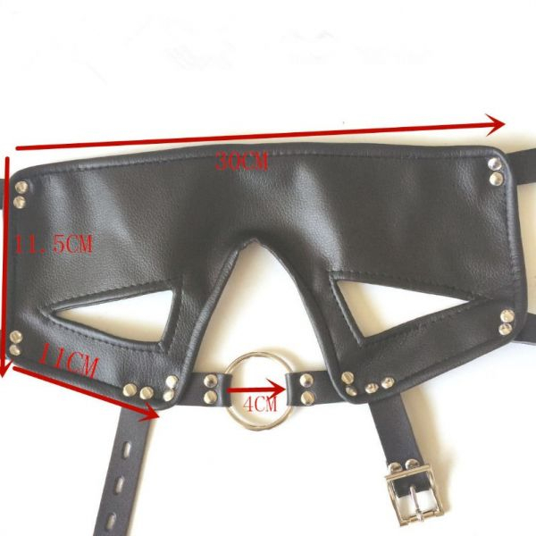 Новейшая кожаная повязка на глаз из нержавеющей стали с кольцевым кляпом Регулируемая окружность головы: 54-68 см. Вес: 108 г.