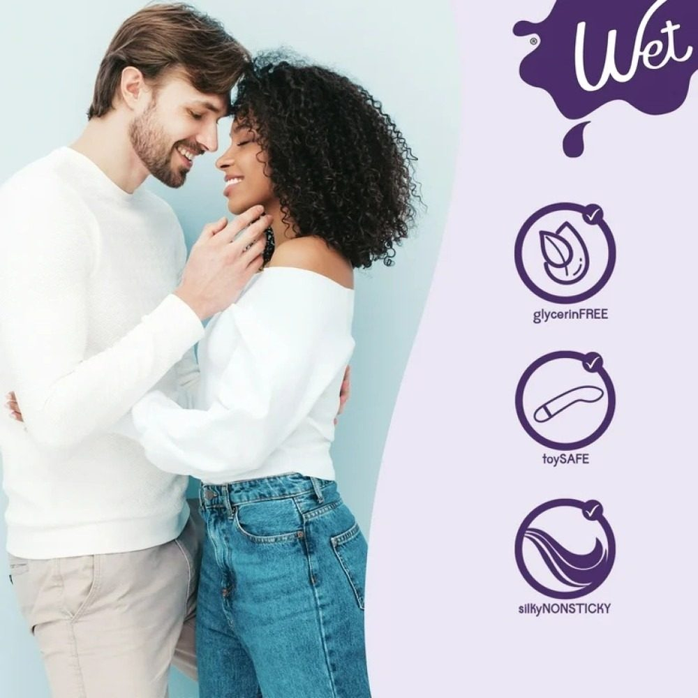 Водно-силиконовый лубрикант от известного американского бренда Wet имеет приятную легкую текстуру.