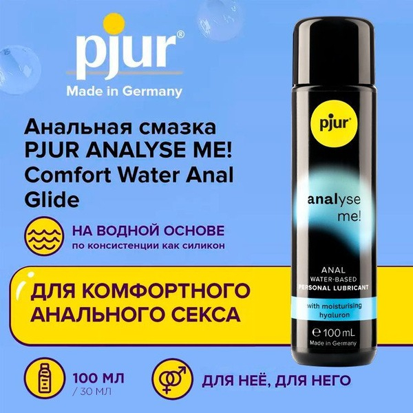 Pjur Проанализируй меня! Comfort Water Anal Glide имеет нейтральный вкус и запах, безопасен для использования с презервативами и отличается необычайно долгим скольжением без липкости.