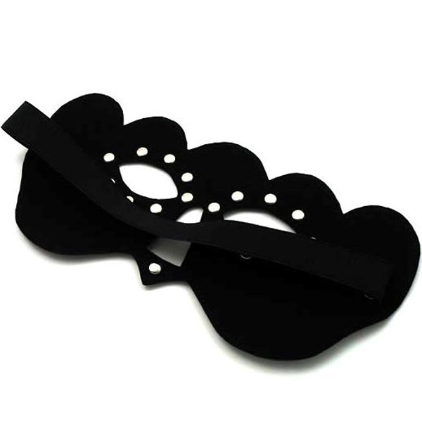 Черная маска бандита с эластичной упругой лямкой. Украшена металическими кнопками.