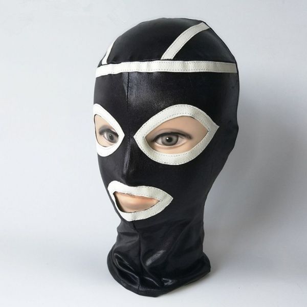Характеристики Маска виниловая черная с белыми вставками для БДСМ с вырезами