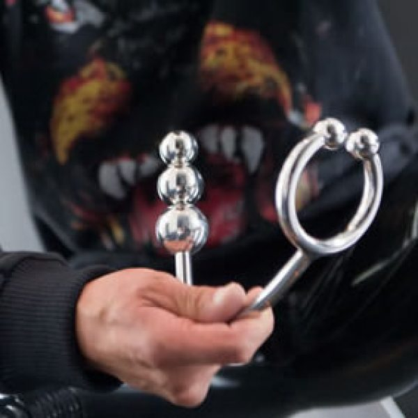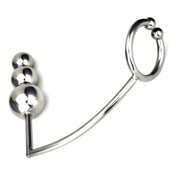 Массажер простаты серебристого цвета изготовлена из нержавеющей медицинской стали. Диаметр кольца 45 мм., минимальный диаметры шариков составляют 20 мм., 28 мм. и 38 мм. Общий вес 455 грамм.